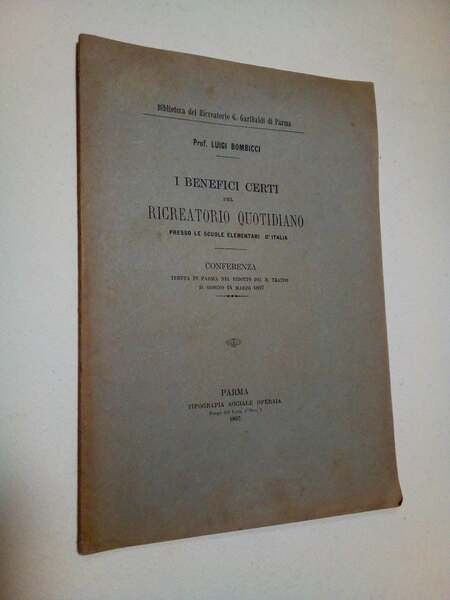 I benefici certi dei ricreatorio quotidiano presso le scuole elementari d'Italia. Conferenza tenuta in Parma nel ridotto del R. Teatro il giorno 14 marzo 1897.