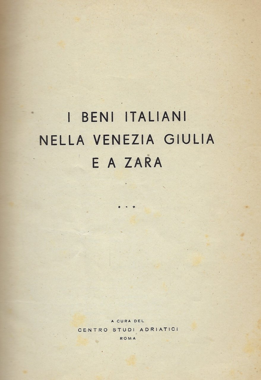 In appendice 2 tavole della Venezia Giulia e del confine jugoslavo. Studio sui problemi relativi all'indennizzo dei beni italiani siti nei territori della Venezia Giulia e Zara e sui danneggiamenti che all'epoca hanno presentato denuncia.