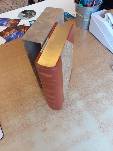 Rilegatura Rigoldi in pelle e carta marmorizzata con custodia. Taglio superiore con 19 passaggi d'oro. Ottime condizioni.