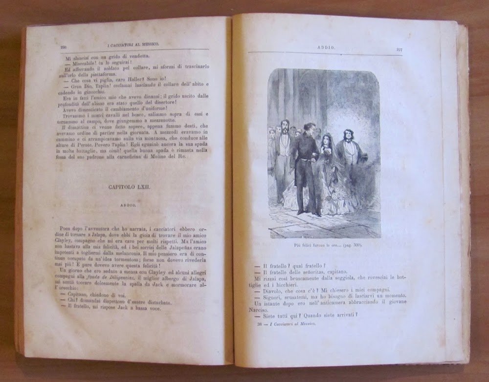 40 incisioni in b/n n.t. anche a piena pagina. Tipografia Editrice Lombarda - Milano, I edizione 1878. Rilegatura coeva con dorso in tela con copertina in brossura originale applicata al piatto. Lieve imperfezione alla cerniera anteriore. Peraltro pulito e fresco. 17,5x26; pp.304. Raro e in Buonissimo stato.