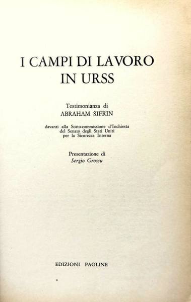I CAMPI DI LAVORO IN URSS: TESTIMONIANZA DI ABRAHAM SIFRIN DAVANTI ALLA SOTTO-COMMISSIONE D'INCHIESTA DEL SENATO DEGLI STATI UNITI PER LA SICUREZZA INTERNA