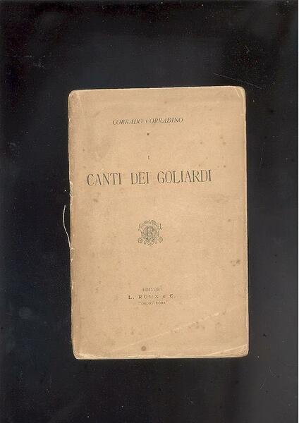 IN 16°, pp.XL, 211. COPERTINA EDITORIALE CON TITOLO. SONO I CANTI DEI GOLIARDI O STUDENTI VAGANTI NEL MEDIOEVO. VERSIONE POETICA E STUDIO STORICO. LEGATURA ALLENTATA, DORSO CON MINIME MANCANZE, ALCUNE pp. SCIOLTE, INTERNO OTTIMO.<BR>OPERA ORIGINALE E RARA.
