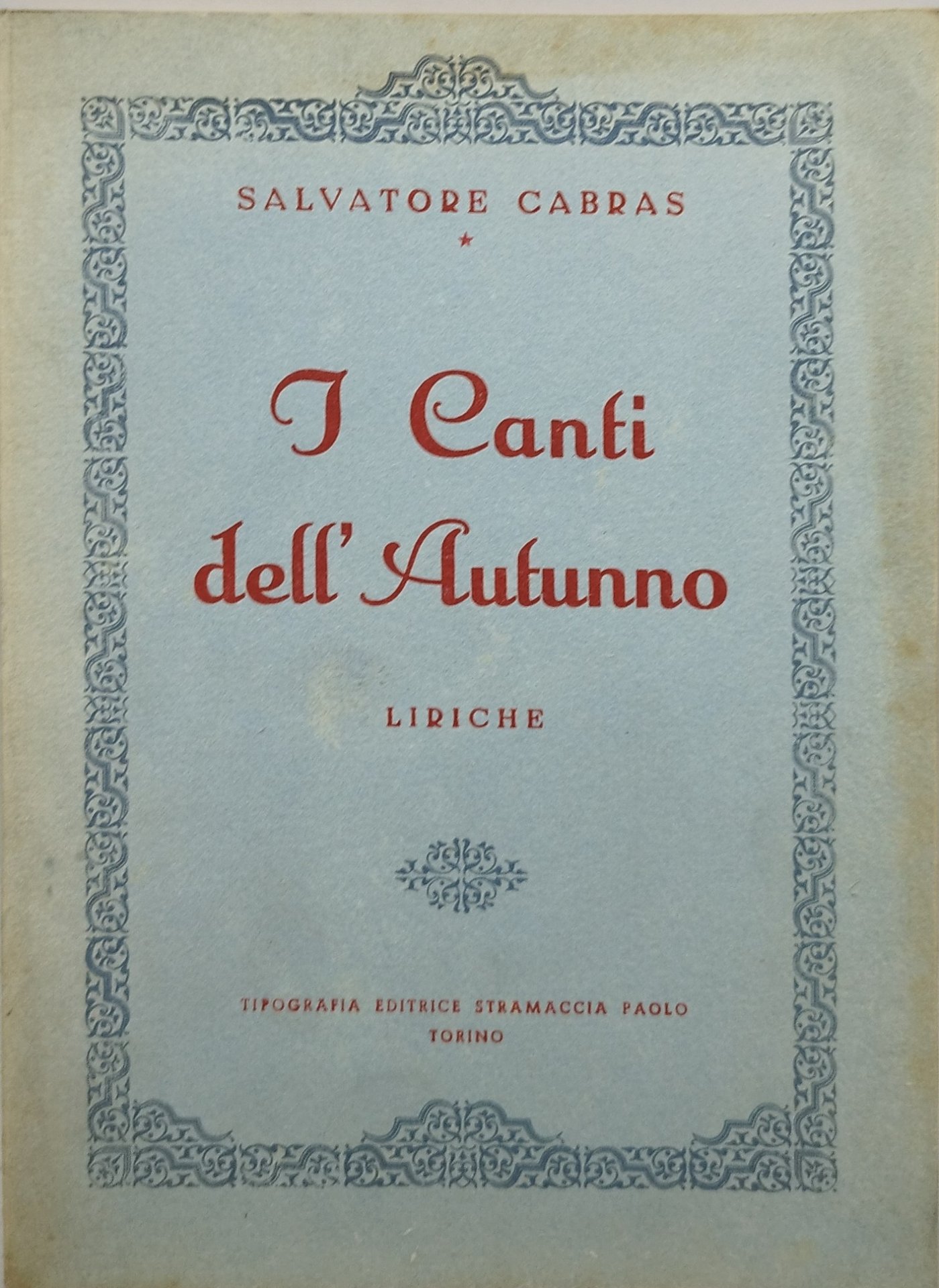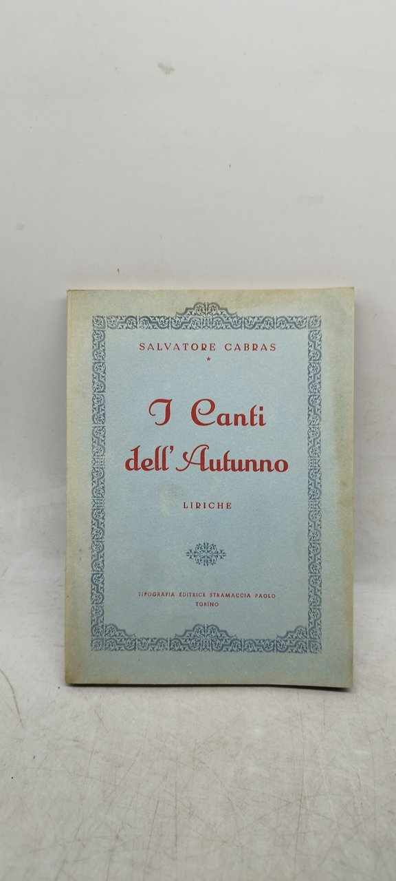 salvatore cabars i canti dell'autunno liriche. , tipografia editrice stramaccia paolo torino italiano, 111 °°