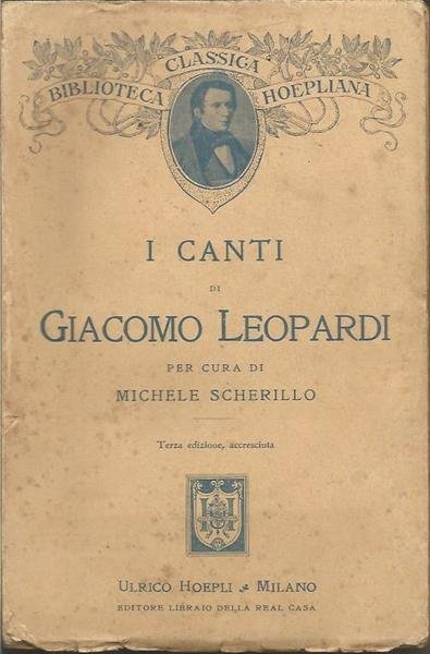 I CANTI DI GIACOMO LEOPARDI PER CURA DI MICHELE SCHERILLO TERZA EDIZIONE ACCRESCIUTA