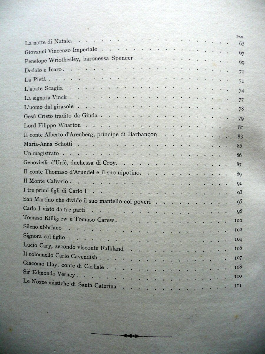 † I Capolavori di Antonio Van Dijck 50 riproduzioni in foto - incisione con testo esplicativo e storico, e una notizia biografica dell'artista da Max Rooses edizione italiana curata da Corrado Ricci Hoepli, Milano 1901; cm 34,5x26; pp. 116 pi˘ 50 belle fotoincisioni in b/n fuori t., tutte con velina protettiva; esemplare in bella carta forte con barbe. Tutto cartonato ed. con titolo in oro al dorso e al piatto ant.; piatti telati. Bella grafica a colori. Frontespizio con applicata etichetta di vecchia libreria rivenditrice (vedi foto). † Condizioni di conservazione Esemplare ben conservato con tracce d'uso e alcune leggere bruniture; piatti con alcuni minimi difetti. Interni buoni; margine interno di pagina 28 leggermente fessurato, esemplare compatto. † Dettagliata opera sul Van Dyck, di notevole qualit‡ e cura grafica ed editoriale. Interni in bella carta forte con barbe. † SETT81.L13932 N