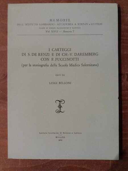 I carteggi di S. De Renzi e di Ch.-V. Daremberg con F. Puccinotti (per la storiografia della Scuola Medica Salernitana)