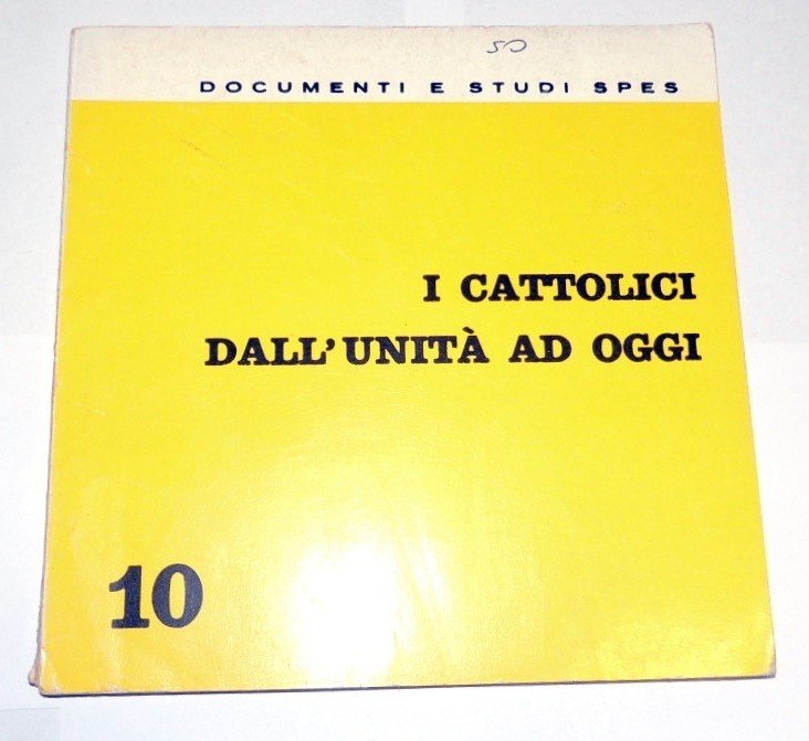 I cattolici dall'Unità ad oggi, DC-Spes, Roma 1962, pp. 64, cm 16, br. ed. Collana Documenti e studi Spes, n. 10. Tracce di usura alla copertina, minimi strappetti al dorso.