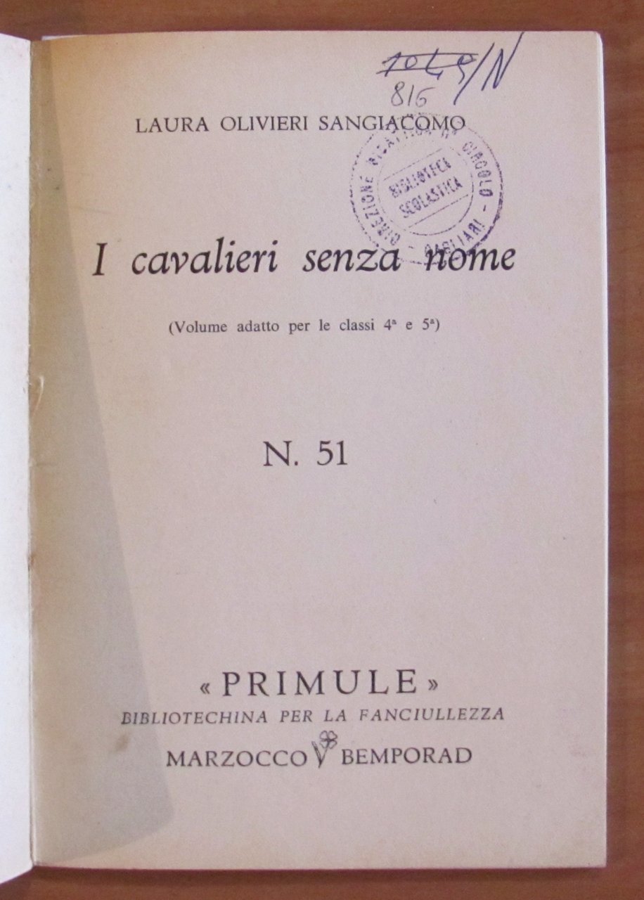 I CAVALIERI SENZA NOME - Bibl. Fanciullezza PRIMULE, 1954