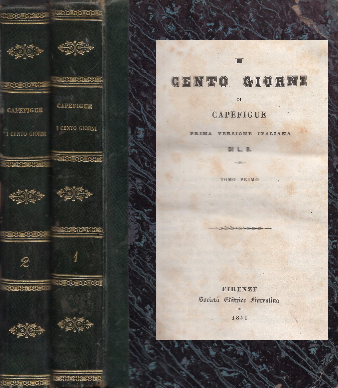 Firma di apparteneza sulla guardia. Etichetta della libreria antiquaria Angelo gandolfi di Bologna all'interno del piatto anteriore del vol I