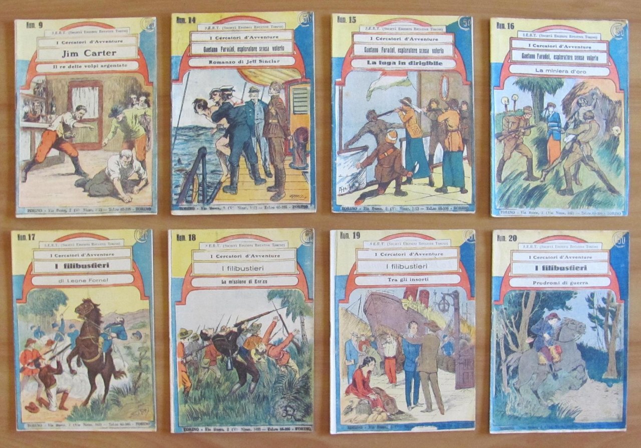 Lotto di 16 Fascicoli sciolti su 20 della serie completa. Mancano i fascicoli dal N.10 al N.13. Belle copertine illustrate a colori. S.E.R.T. Società Edizioni Rotative - Torino, s.d. anni '20/30. Brossure editoriali. 13,5x19; pp.30 cadauno. Rarissimi e tutti in Ottimo stato. , Ottimo (Fine)