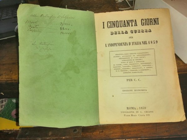 I cinquanta giorni della guerra per l'indipendenza d'Italia nel 1859. Edizione economica. Per C. C.