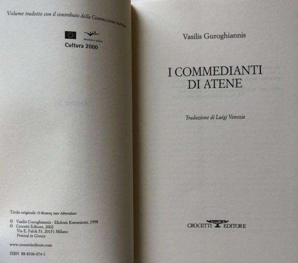 Soggetti: Letteratura greca contemporanea, Romanzi stranieri, Narrativa, Mitologia, Teatro greco, Commedianti, Tragedia, Drammaturgia, Dèi, Prometeo incatenato, Eschilo, Zeus, Dodona, Teatranti, Attori, Fantasy, Delfi, Sofocle, Euripide, Cultura classica, Classici, Romanzo storico, Racconti brevi, Utopia, Valori universali, Greek fiction, History, Drama, Short stories, Greek nationalism, Modern Criticism, Interpretation, Compagnia teatrale ateniese, Ioannina Writers, Livres Grecs, Grecque, Apollodoro, Ercole, Euridice, Melpomene, Atene, Spettacolo, Persiani, Aristosseno, Iside, Libri Vintage, Fuori catalogo, Out of Print Books, Guerre di religione, Impero romano, Cristianesimo, Paganesimo, Contemporary Greek literature, Foreign novels, Mythology, Greek Theater, Comedians, Tragedy, Drama, Gods, Chained Prometheus, Aeschylus, Zeus, Dodona, Theatrants, Actors, Delphi, Sophocles, Euripides, Classical culture, Classics, Historical novel, tales short, Universal values, Short stories, Athenian Theatre company, Apollodorus, Hercules, Eurydice, Melpomene, Athens, Entertainment, Persians, Aristoxenus, Isis, Religion Wars, Roman Empire, Christianity, Paganism