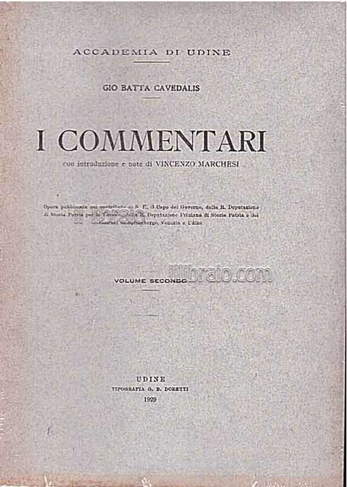 2 voll.; in 8°; pp. XLVIII, 352, 474 + tavv. (ill. in bn.); br. Con introduzione e note di Vincenzo Marchesi. Opera pubblicata col contributo di s. E. il capo del Governo, della R. Deputazione di storia patria per le Venezie, della R. Deputazione friulana di storia patria e dei comuni di Spilimbergo, Venezia e Udine (ottimo)