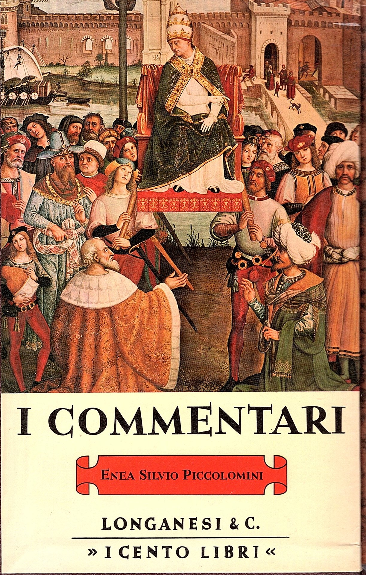 2 volumi in-8, (19x12.5 cm), pp. 697 (5); 702-1469 (vol. II), legatura editoriale in pelle con fregi e titoli in oro al dorso, acetato protettivo, tagli superiori colorati, custodia editoriale cartone rigido illustrato.12 tavole a colori fuori testo (6 per ciascun volume) che riproducono le storie di Pio II affrescate dal Pinturicchio nella libreria Piccolomini del Duomo di Siena. Conservato il segnalibro informativo del volume. I cento libri, 54 & 55. Ottimo esemplare (n°771/1200) su carta d'India. L'opera, scritta da E. S. Piccolomini, è autobiografica ed è incentrata sul periodo del suo pontificato come papa Pio II, principiata nel 1462 è scritta tuttavia in terza persona.