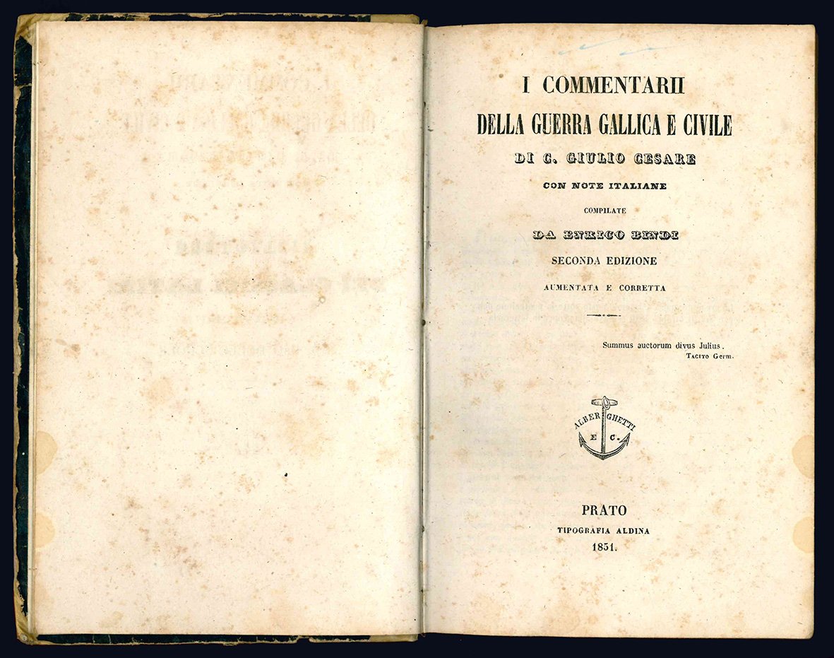 I Commentarii della guerra gallica e civile di C. Giulio Cesare con note italiane compilate da Enrico Bindi. Seconda edizione aumentata e corretta.
