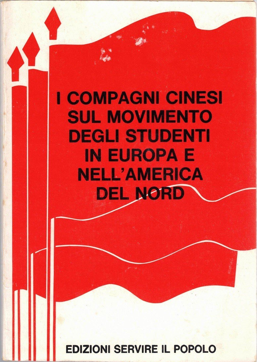 I compagni cinesi sul movimento degli studenti in Europa e nell’America del Nord, Edizioni Servire il popolo, s.l. (ma stampato a Roma, presso la Tipolitografia artigiana) 1969, pp. 62, cm 18, br. ed. Lievi tracce d’uso alla brossura, minima brunitura della carta, per il resto ottimo esemplare.