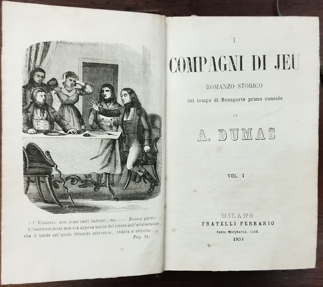 I Compagni di Jeu. Romanzo storico del tempo di Bonaparte primo console di A. Dumas. Vol I-V