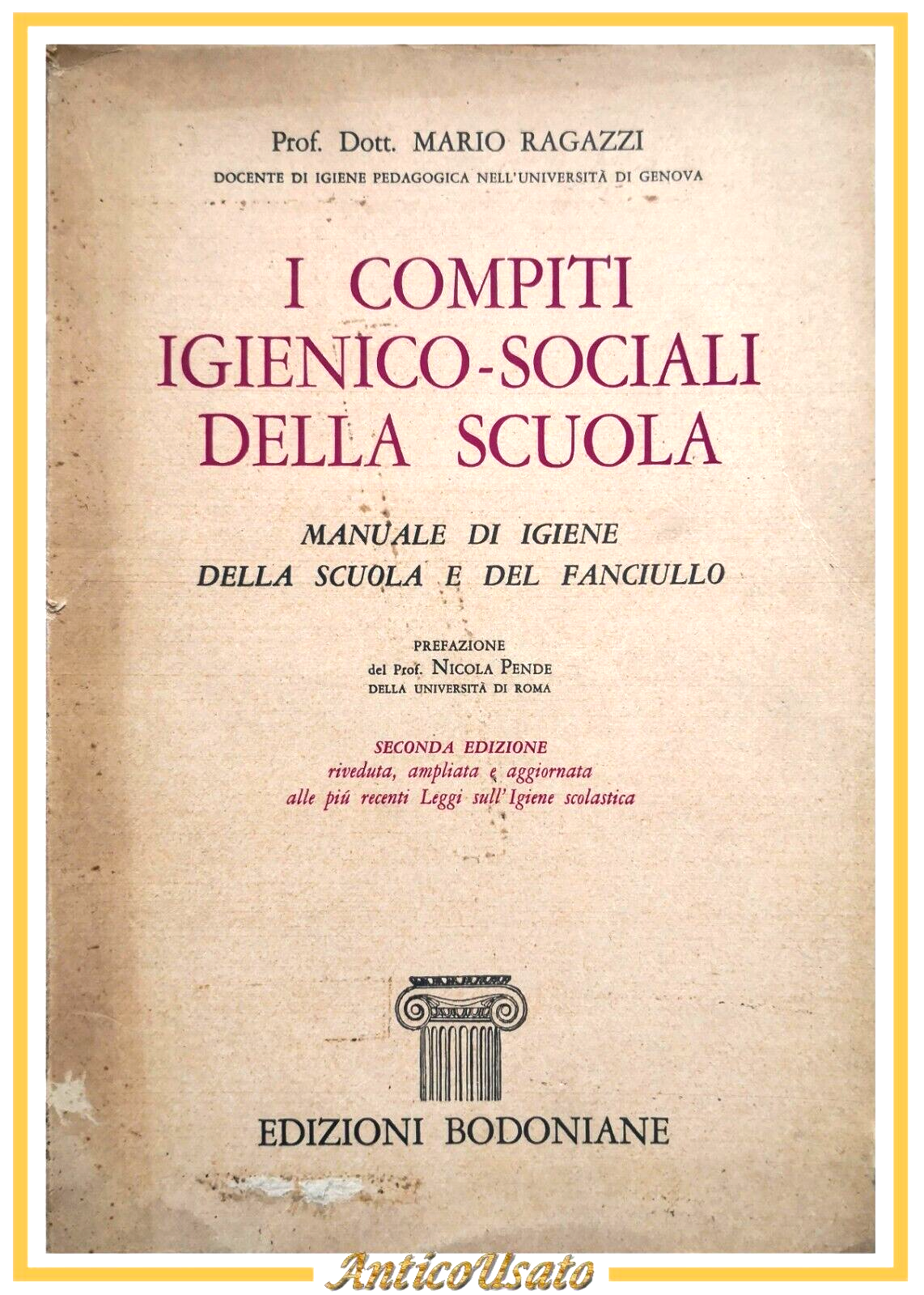 I COMPITI IGIENICO SOCIALI DELLA SCUOLA di Mario Ragazzi 1965 Edizioni Bodoniane