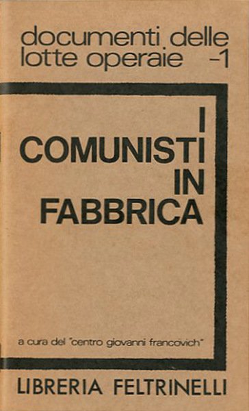 62 p. ; 18 x 11 cm. Documenti delle lotte operaie. Sommario: Il mese operaio; Da tre a un iscritto ogni 10 operai; L'astensionismo di Bordiga; Dal Comintern la direttiva delle cellule; Linea bolscevica e cinghia di trasmissione; Comitati d'agitazione e lotta per il pane; Il "partito nuovo"; Togliatti: gli operai non bastano; Cos'era la doppiezza; Uso leninista del PCI in fabbrica; La sindacalizzazione del partito; Il crollo della FIAT; Tentativi di ricupero; La terza assemblea; I quadri aziendali del PCI; Le giovani forze; I militanti rassegnati; L'articolazione fabbrica-società; I socialisti-democratici non varcano i cancelli. Brossura editoriale spillata, coperta in cartoncino flessibile di colore marrone. Leggero imbrunimento del taglio e delle pagine per la qualità della carta ma ottimo stato. Codice libreria 2046.