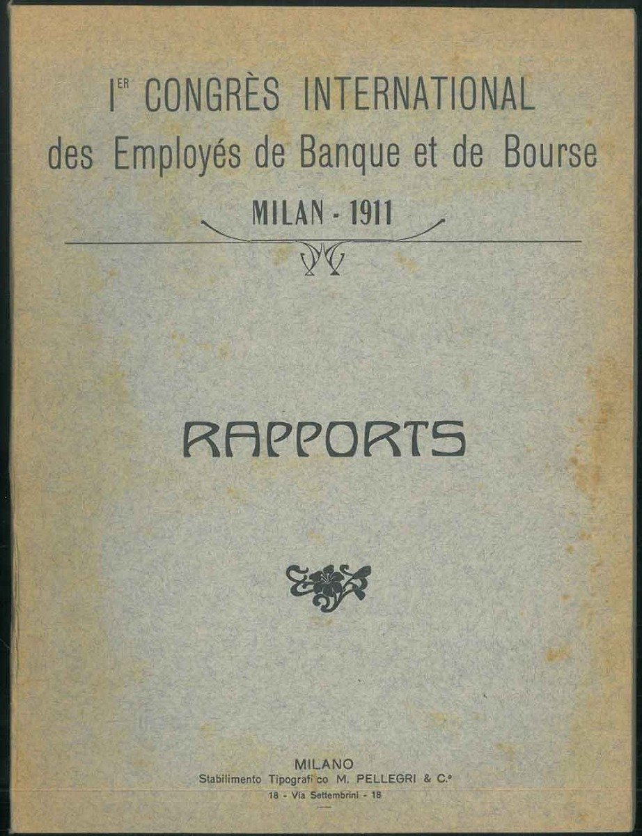 I° congrès international de banque et de bourse. Milan 1911. De la constitution d'un bureau international des employés de banque et de bourse