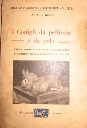 In-16°, pp. 126 con 9 tavv. fot. b/n f.t. e pp. 4 cat. edit. su carta azzurra. Bross. a stampa ill. con fot. b/n di conigli al piatto, tit. rosso al piatto ant., tit. nero al ds. Macchie al piatto ant., mancanze al ds.
