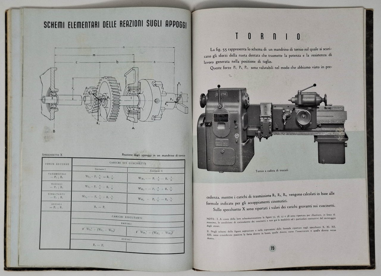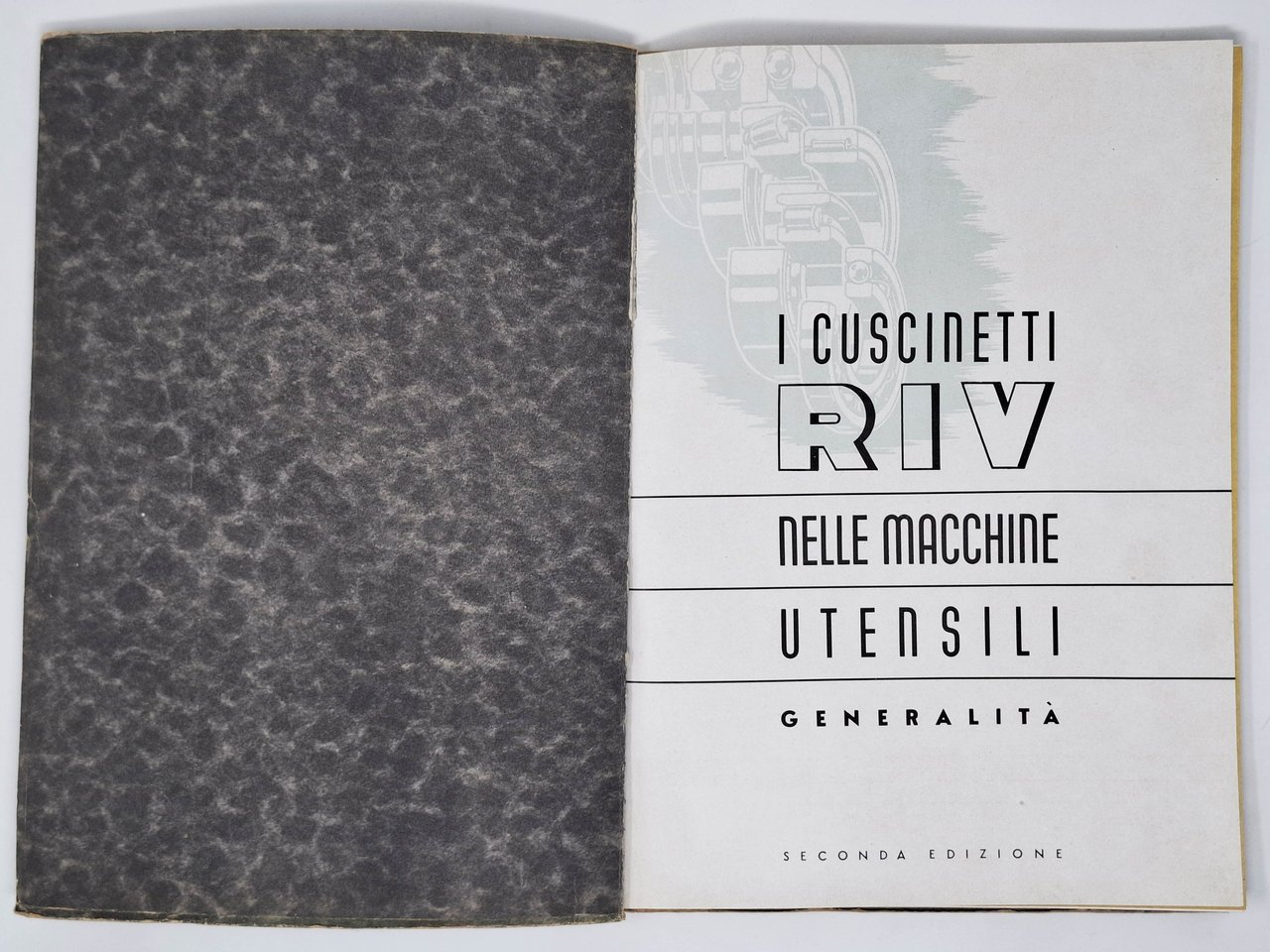 Seconda edizione. Collana tecnica RIV. Finito di stampare coi tipi dell'Istituto Grafico Bertieri, Milano nel Settembre 1946. Pagine: 93. Formato: 21,5 x 29,5 cm circa. Tra le industrie che hanno collaborato alla presente pubblicazione con fotografie dei prodotti montati su cusinetti RIV citiamo la FIAT, la Nebiolo, l'Olivetti di Ivrea, l'Ansaldo di Genova. Pubblicazione tecnica, a carattere pubblicitario. Ricca di illustrazioni e fotografie dei vari macchinari. Stato di conservazione: qualche ombra causata dal distacco, in passato, di pagine frontali che presumibilmente si era attaccate tra loro ma non si sono creati strappi ne abrasioni rilevanti. Completamente leggibile e fruibile. Qualche piega e leggera abrasione sui bordi della copertina. Pubblicazione di non facile reperimento.