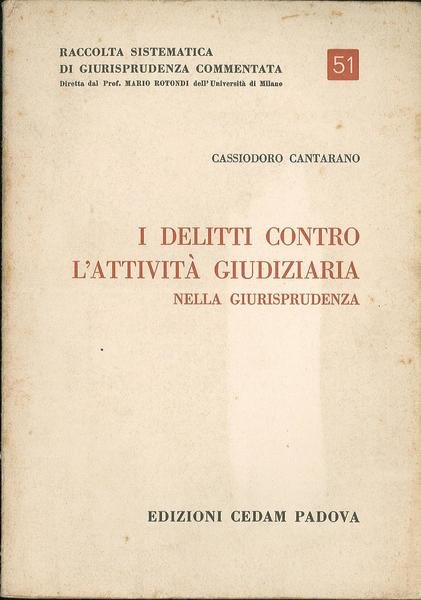 In testa in copertina "Raccolta sistematica di giurisprudenza commentata, diretta dal Prof. Mario Rotondi dell'Università di Milano, 51". Timbro a secco Siae al frontespizio. Pagine appena ingiallite; piccole macchie all'esterno ed etichetta del prezzo applicata in quarta