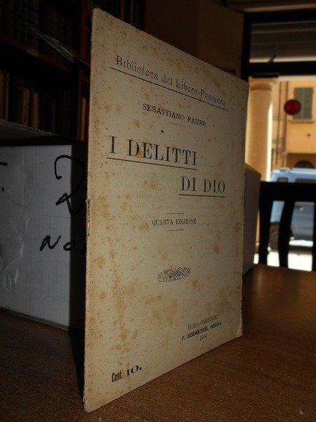 Sebastiano, Faure. Roma-Firenze, F. Serantoni, 1904. I Delitti di Dio. In-16°, br. orig. con punto metallico. 30 pp. Opuscolo con lievi fioriture alle brossure, interno ben conservato. Neg. scat. 2 opusc. nonn.