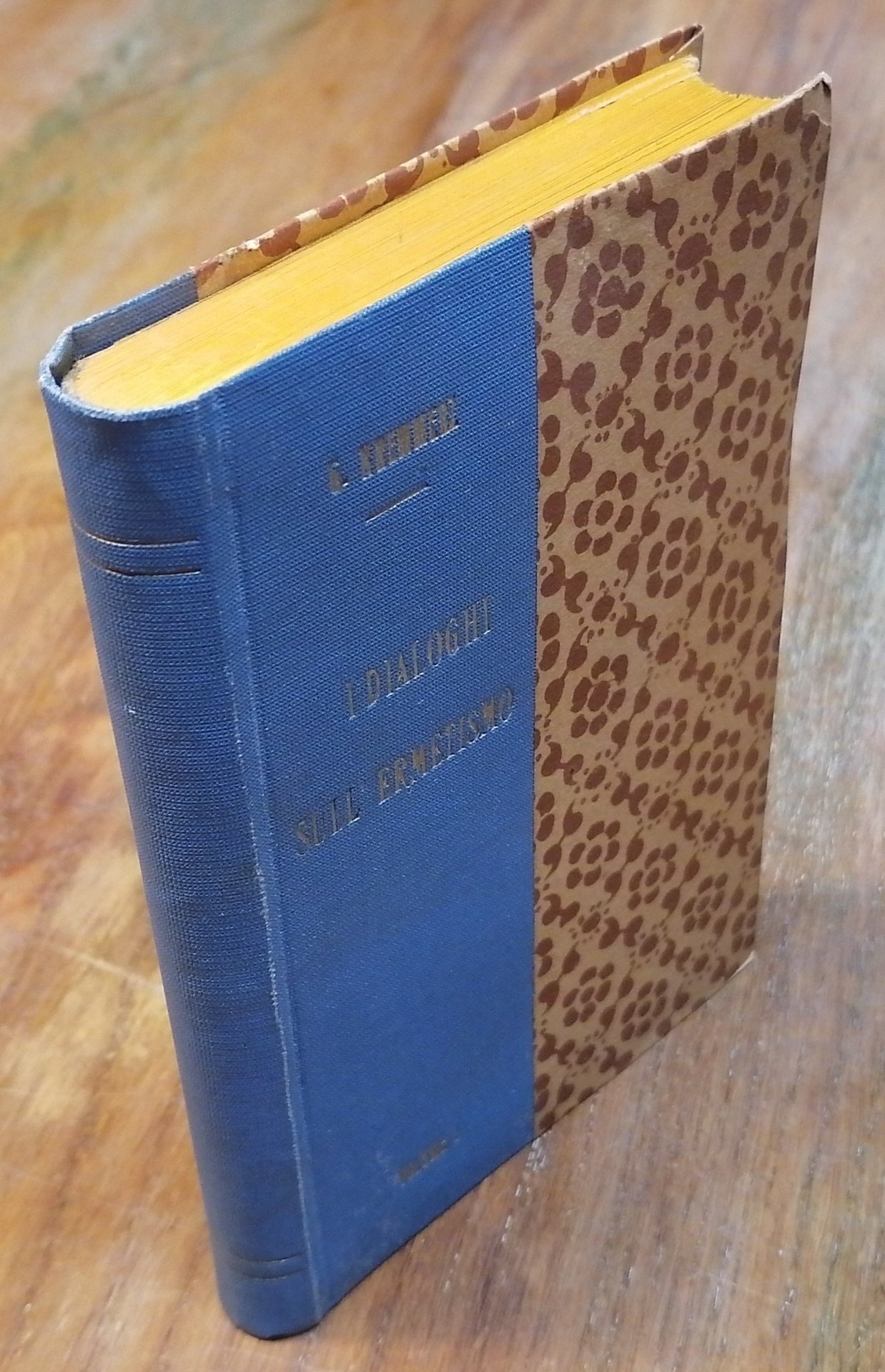 (Esoterismo - Filosofia ermetica) In 16° (cm 17 x 11,5), legatura editoriale in mezza tela azzurra, filetti dorati al dorso, titoli in oro al piatto anteriore, taglio di testa colorato, pp. 312. Edizione originale fuori commercio dei primi sette "Dialoghi" dell'esoterista napoletano Giuliano Kremmerz, pseudonimo di Ciro Formisano (Portici, 1861 - Beausoleil, 1930), nel 1931 fu pubblicata una seconda edizione postuma ed aumentata con i "Dialoghi" ottavo e nono. Ottimo stato di conservazione.