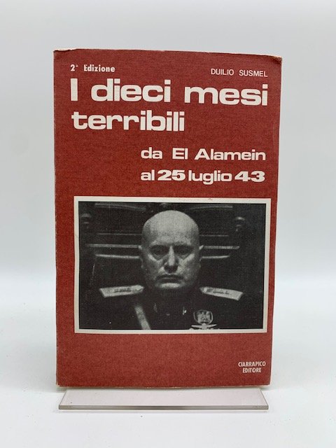 In 8, cm. 16 x 24, pp. VII + 399 + (5), con numerose illustrazioni fotografiche in bianco e nero distribuite su 22 tavole fuori testo. Brossura editoriale illustrata con alette. Ottimo esemplare. Collana: Storia affaire. Susmel, giornalista e storico, esperto del Fascismo, racconta attraverso eventi personaggi e documenti i dieci mesi della disfatta Italiana. Il libro parte dalle ultime decisive vicende belliche africane per approdare agli intrighi della Monarchia e dell' Oligarchia fascista agli inizi del 1943.
