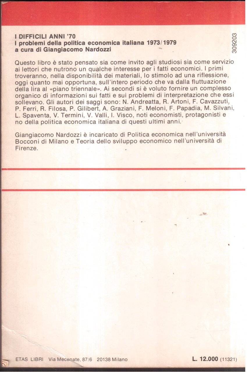 I difficili anni '70 - I problemi della politica economica italiana 1973/1979
