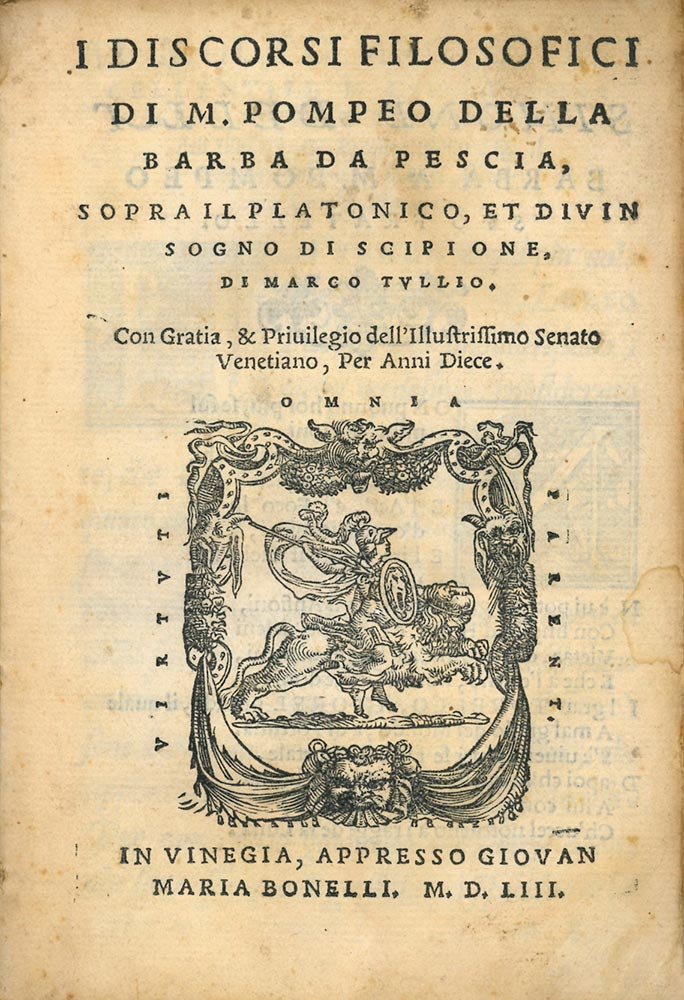 I discorsi filosofici di M. Pompeo Della Barba da Pescia, sopra il platonico, et divin Sogno di Scipione, di Marco Tullio