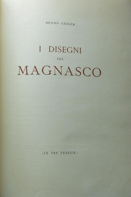 Padova, Le Tre Venezie, 1945. In 4to, pp. LXXXVI con 125 pp. di tavv. f.t. in b/n + 2. Edizione numerata di 1500 esemplari, il nostro il numero 28, leg. in tela color vinaccia con dorso in pelle del medesimo colore. Corpus dei disegni di Alessandro Magnasco conservati nei musei e nelle raccolte private, corredato da note critiche e da un saggio introduttivo sul grande pittore genovese. Molto buona la conservazione.