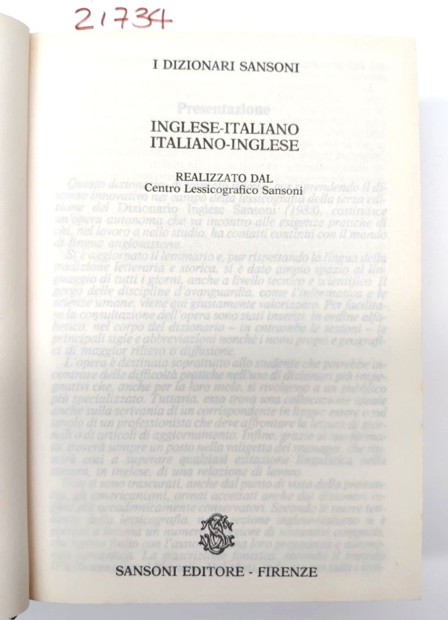 I dizionari Sansoni inglese - italiano, italiano - inglese 1990