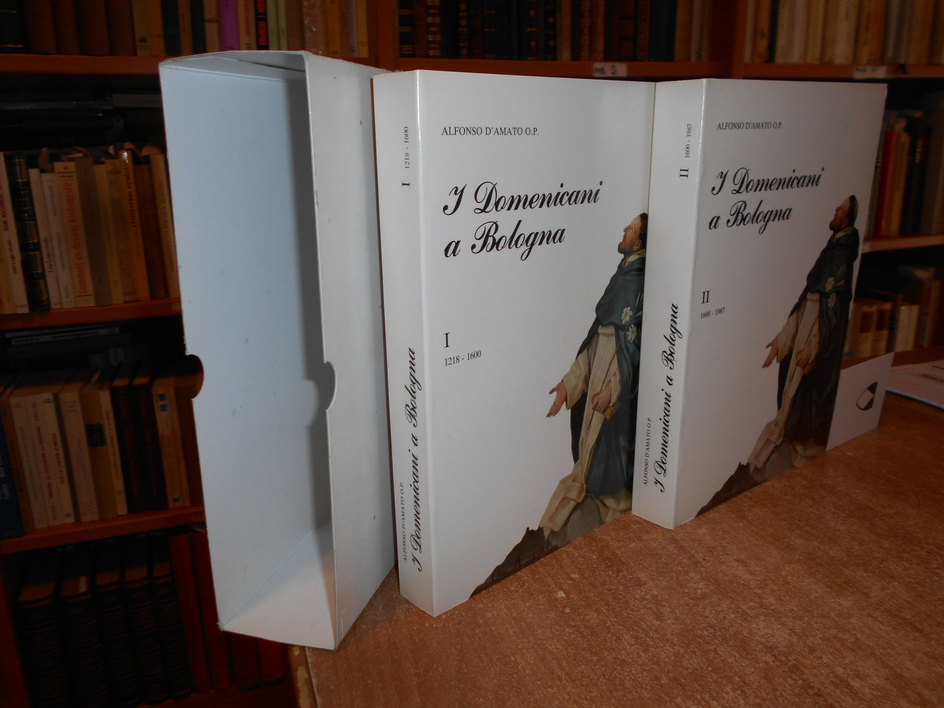 ALFONSO D' AMATO O.P. Bologna, Edizioni Studio Domenicano, ESD, 1988. I Domenicani a Bologna. 1218-1600. 1600-1987. 2 volumi in-8°, cart. edit. ill. a col. per complessive 1256 pp. con numerose illustrazioni anche a piena pagina a colori e in bianco e nero n.t. Completo e come nuovo con astuccio in cartoncino muto. Neg. Bol. mob. S