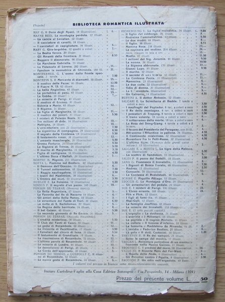 I Grandi Romanzi d'Avventure. Copertina e 26 illustrazioni in b/n n.t. Casa Editrice Sonzogno - Milano, 1929. Brossura editoriale con usure e piccole mancanze al dorso e ai margini esterni delle copertine. Riparazione di un taglio all'interno della prima di copertina. Timbro di vecchia appartenenza all'occhietto. Pagine freschissime. 22,5x31; pp.80. Buono stato. , Buono (Good)