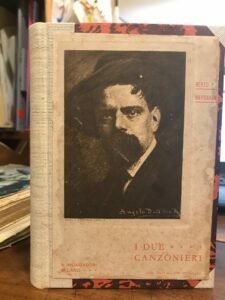 Copertina di Angelo Dall'Oca Bianca. Poesie in dialetto veronese. Legatura ben rifatta con applicata ai piatti la brossura originale. Normale brunitura della carta, molto buono lo stato di conservazione. Pagg. 315 Mezza tela moderna con brossura originale applicata ai piatti. Mis mm 165x110