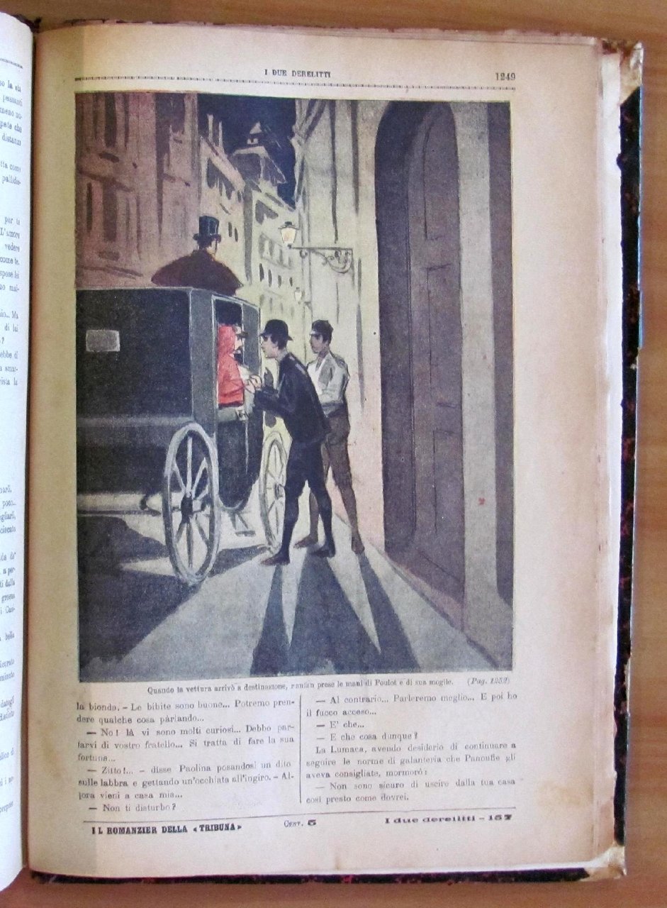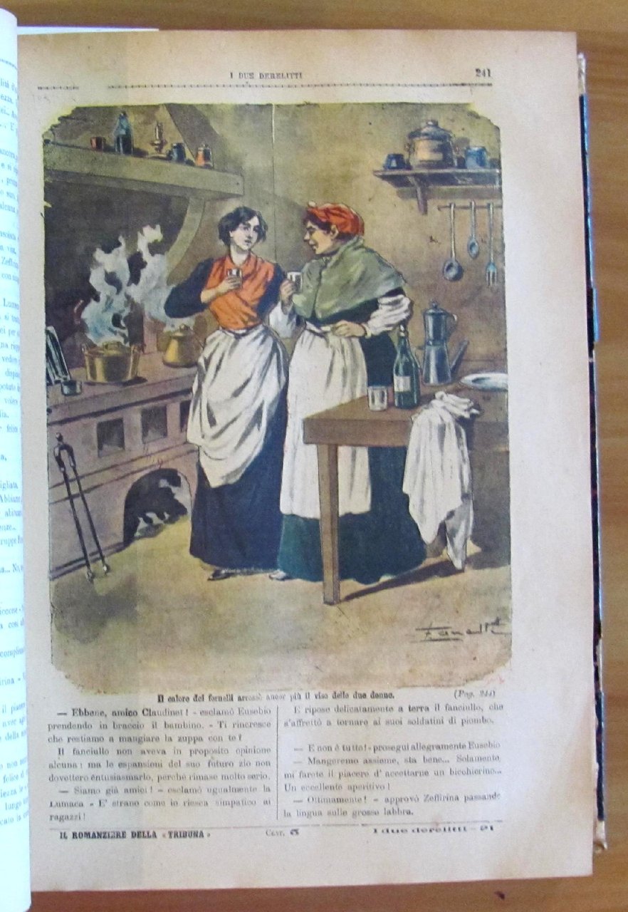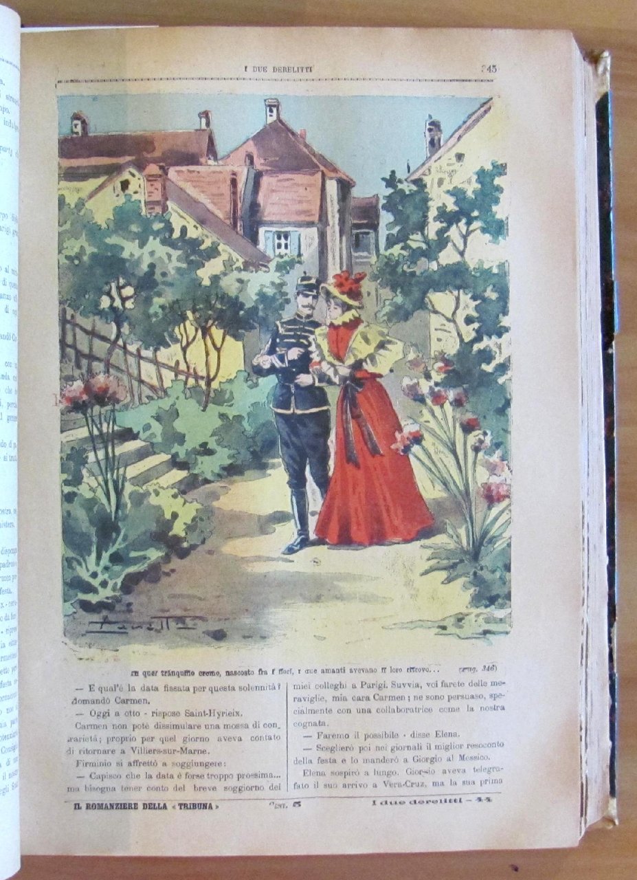 Opera completa in 161 dispense aventi ognuna la copertina illustrata a colori da Zanetti. Edito da Il Romanziere della Tribuna, s.d. fine '800. Rilegatura coeva con dorso in pelle con titoli in oro. Restauro alla cerniera posteriore, al margine della prima pagina e all'angolo alto di 4 pagine della dispensa 21 (come da foto). Le primissime pagine si presentano sfrangiate al margine esterno ma per il resto sono tutte freschissime e pulite. 22x31; pp.1288. Raro e in Buonissimo stato. , Molto buono (Very Good)
