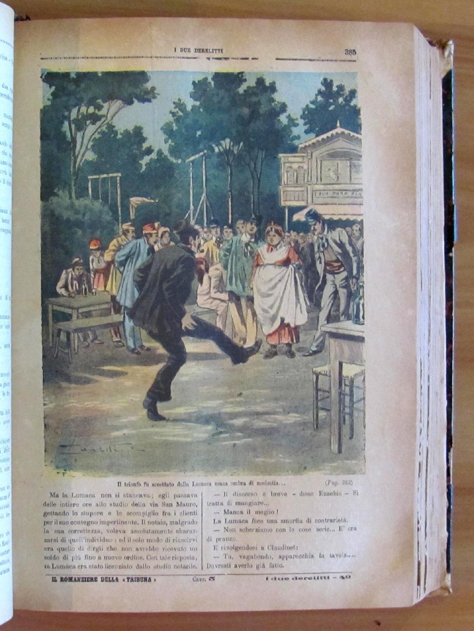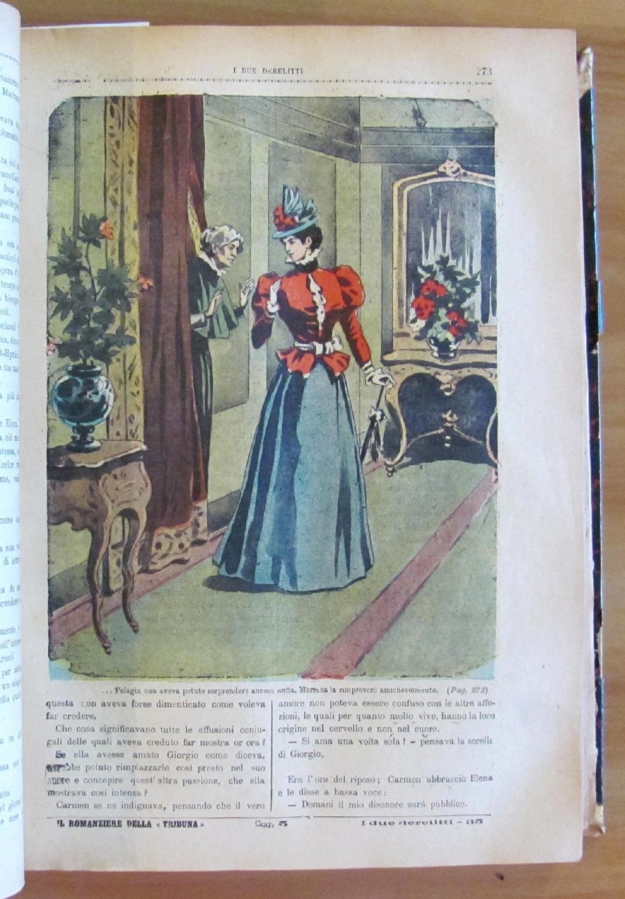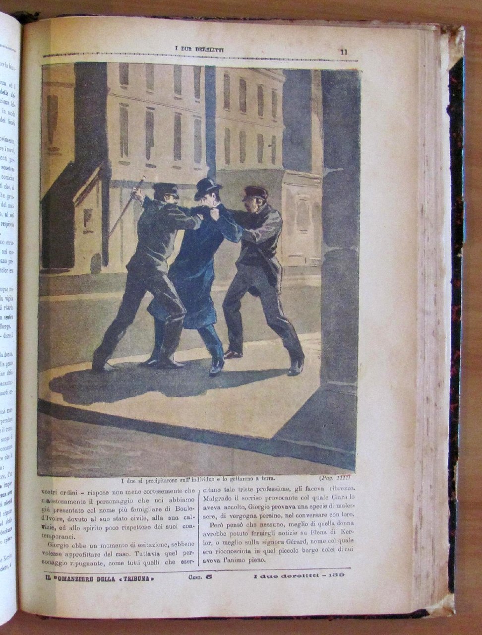 Opera completa in 161 dispense aventi ognuna la copertina illustrata a colori da Zanetti. Edito da Il Romanziere della Tribuna, s.d. fine '800. Rilegatura coeva con dorso in pelle con titoli in oro. Restauro alla cerniera posteriore, al margine della prima pagina e all'angolo alto di 4 pagine della dispensa 21 (come da foto). Le primissime pagine si presentano sfrangiate al margine esterno ma per il resto sono tutte freschissime e pulite. 22x31; pp.1288. Raro e in Buonissimo stato. , Molto buono (Very Good)