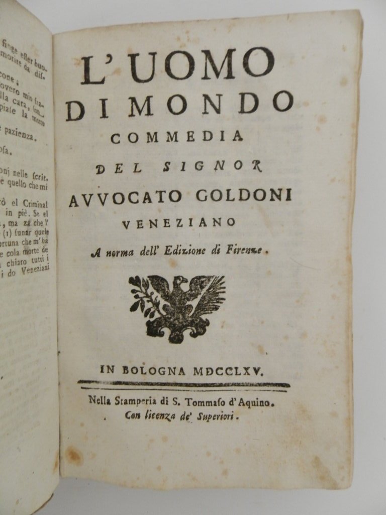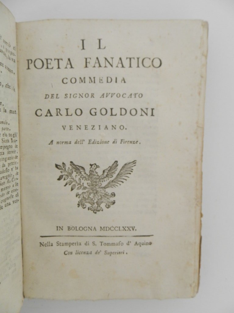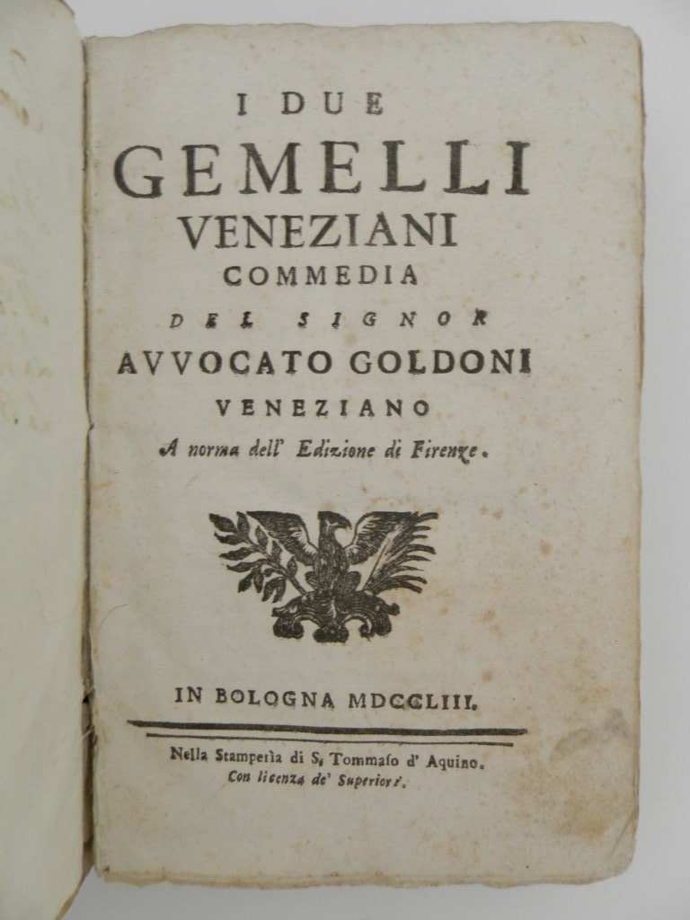 I due gemelli veneziani – L’uomo di mondo – Il poeta fanatico – La putta onorata – La buona moglie. Venezia l’anno precedente, nell’edizione Bettinelli.