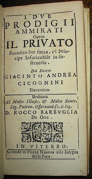 I due prodigii ammirati overo il privato favorito per forza, e’l Principe Infaticabile in sostenerlo