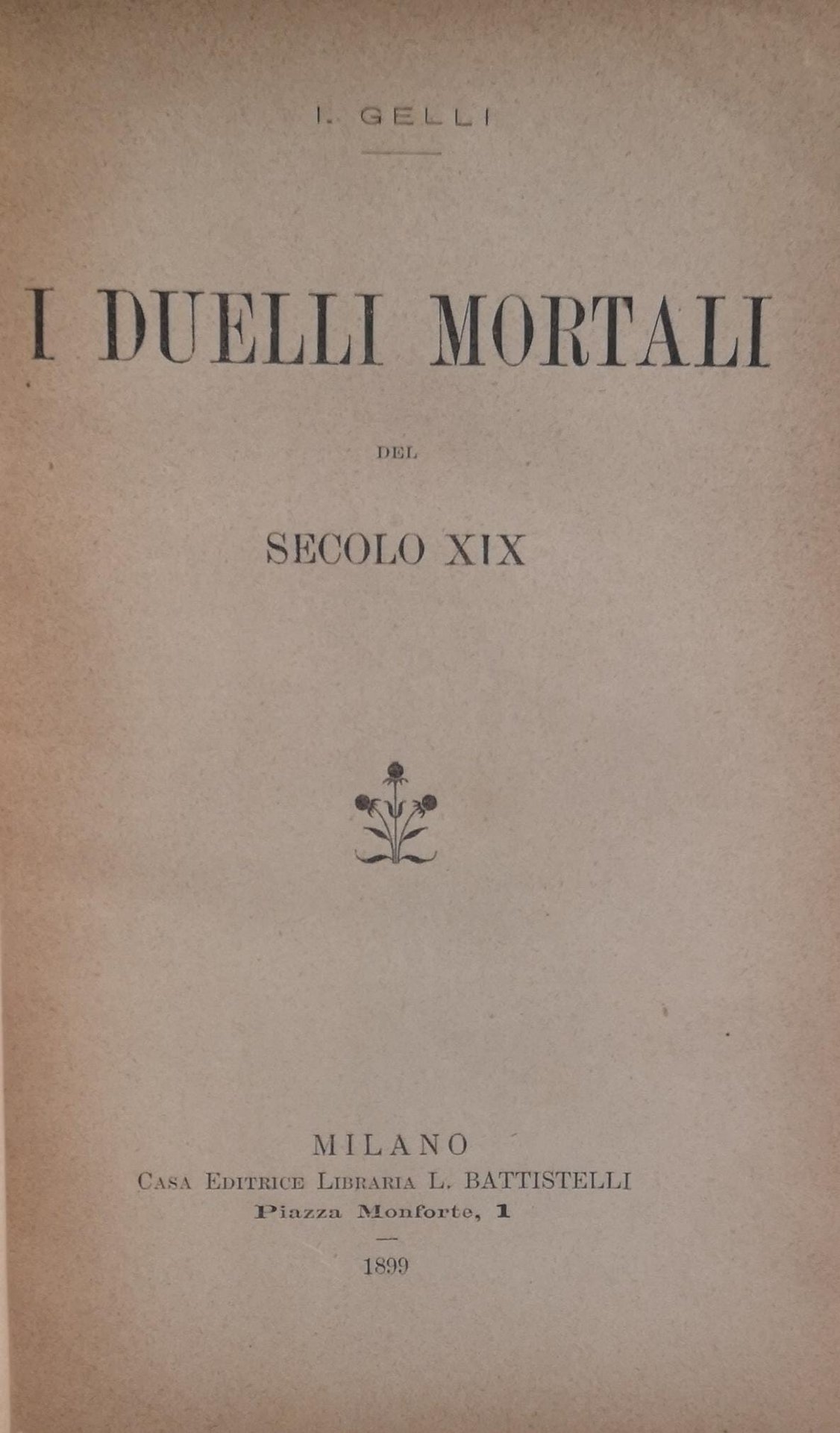 In-16 (cm. 19), mezza tela editoriale, titolo al dorso, pp. XIII, 299, 1 ritratto allocchietto. Pagine leggermente ingiallite per la qualità della carta, peraltro in buono stato (good copy).Unito a: Gelli Jacopo: Responsabilita penale dei duellanti -Firenze, Loescher, 1888. Pagine 41 in tiratura limitata di 500 esemplari.In ottimo stato (nice copy)..