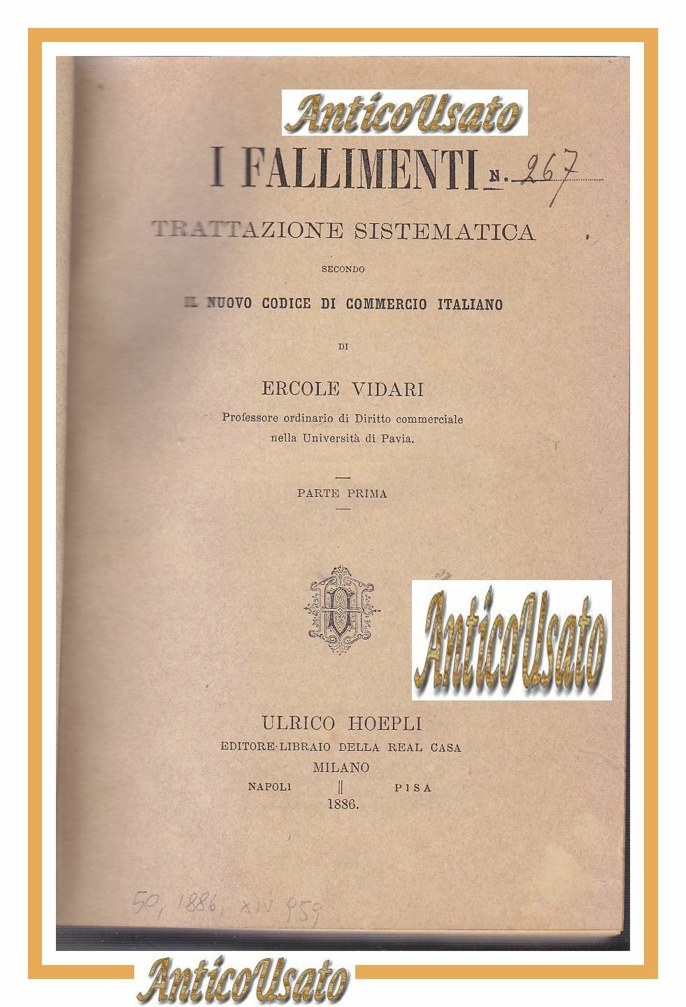I FALLIMENTI trattazione sistematica di Ercole Vidari 1886 Hoepli libro antico