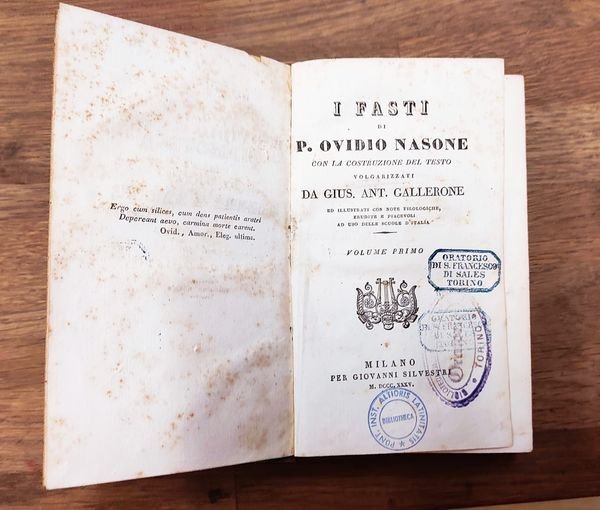 I Fasti, con la costruzione del testo volgarizzati da Gius. Ant. Gallerone ed illustrati con note filologiche, erudite e piacevoli ad uso delle scuole d'Italia. 2 Volumi
