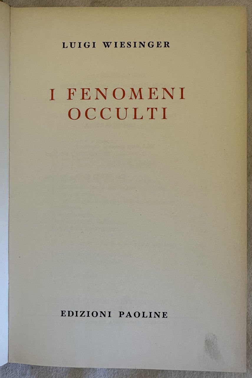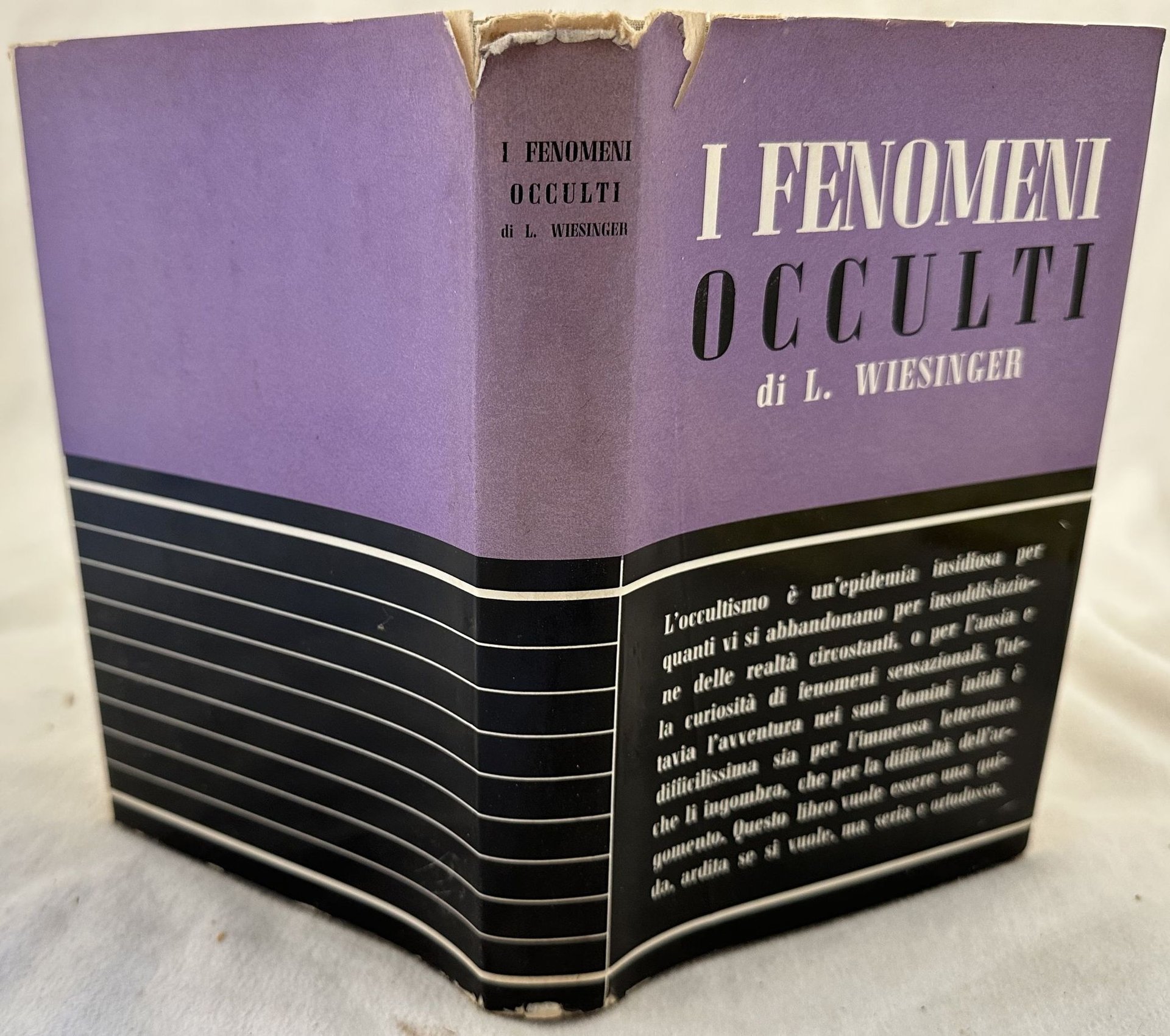 Edizione del 1956 di questo volume sui fenomeni occulti scritto da Luigi Wiesenger. All'interno: I doni preternaturali, Residui dei doni preternaturali negli stati del sonno (sonnambulismo, doppia vist, isterismo, stregomania, fenomeni medianici, la vera pazzia, telepatia, chiaroveggenza, le apparizioni fisiche, teleacustica, telecisnesi, teleplastica, magia, neoplatonismo, radiostesia, cucismo e Christian Science, Cristalloscopia, spiritismo, fantasmi, ilomanzia, ipnosi, possessione diabolica, sonno mistico ecc. In ottime condizioni. Copertina in tela con sovraccoperta in ottime condizioni generali con lievi usure ai margini e dorso. Legatura in buone condizioni generali. Pagine in ottime condizioni generali. In 8. Dim. 21,5x14 cm. Pp. 322+(2).