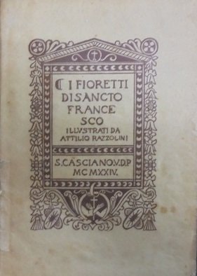 SANCASCIANO, SOC.ED.TOSCANA, 1924. In 16∞: pp. XVI + 317. Con 40 xilografie f.t. di Attilio Razzolini. Bross. edit. pergamenata con mende, decoraz. xilografica in seppia al piatto, front. inquadrato da cornice ornamentale. Bruniture per il tipo di carta.