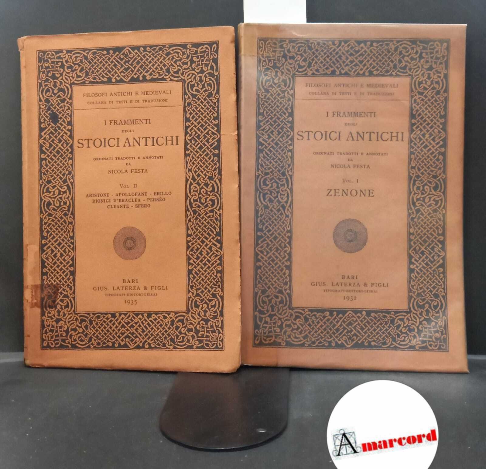 900 aa.vv. I frammenti degli stoici antichi 2 voll.. , laterza 1932-1935 italiano, in ottavo -- 41262