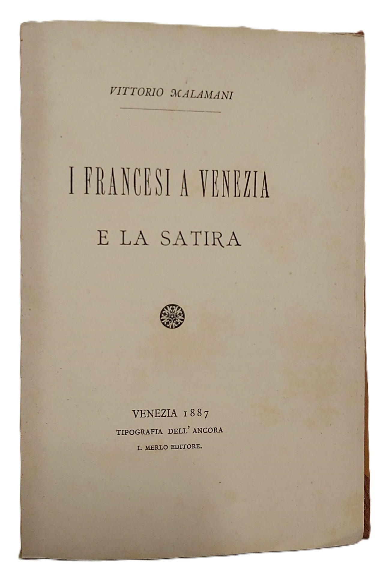 in-8, pp. 193, (6), leg. m. pelle coeva con carta dec. ai piatti e tit. oro al d. Conservate le cop. orig. La fine della Repubblica, la "gazzarra dei democratici", Campoformio, i tedeschi, etc… [234]