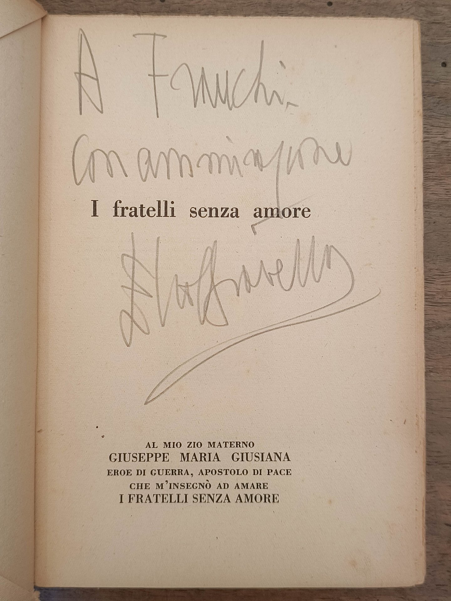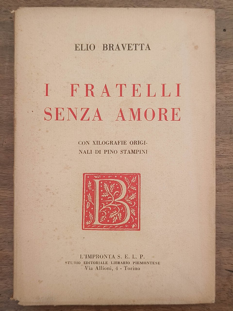 I fratelli senza amore, Torino, L'impronta, 1931. Cm 19,2. Pp. 157. Brossura editoriale. Numerose xilografie di Pino Stampini fuori testo. Esemplare n. 571 di 1000. Invio autografo dell'autore.