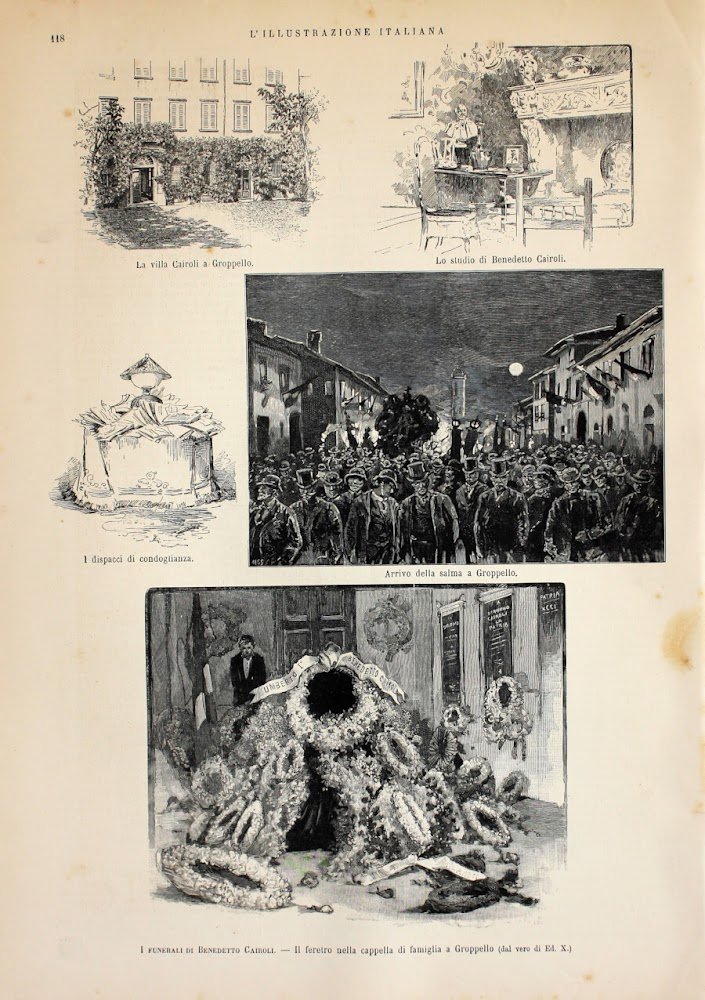 I funerali di Benedetto Cairoli. Il feretro nella cappella di Gropello. Stampa 1889